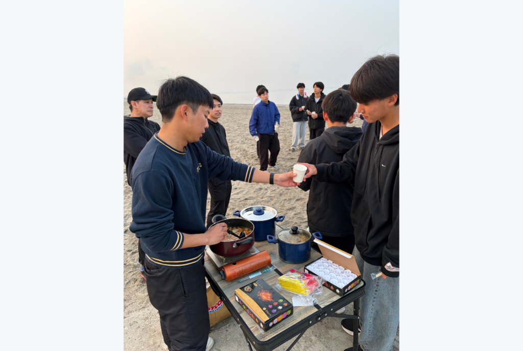 見事に完歩し、海浜幕張のビーチにたどり着いた時の彼の達成感に満ちた表情。サポートメンバーが準備してくれた温かい”けんちん汁”が何よりのご褒美。冷えた体の隅々にまで染み込む美味しさで「うまい!」「おかわりください!」と大人気でした。その後、疲れも見せず砂浜でビーチフラッグに興じる子どもたちの姿は、自力で困難を突破した先にしかない、生のエネルギーの爆発を象徴していました。