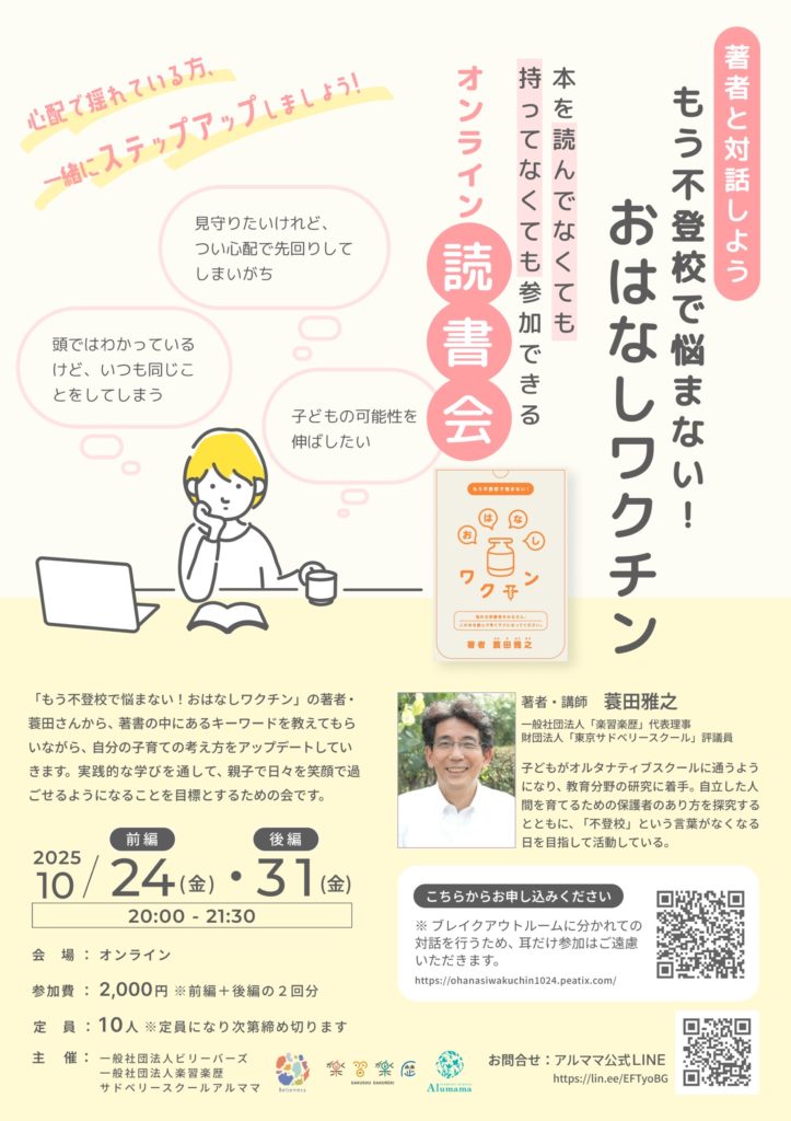 不登校の子どもを抱える保護者の方々が、少しでも気持ちが楽になったらという想いで活動しています。