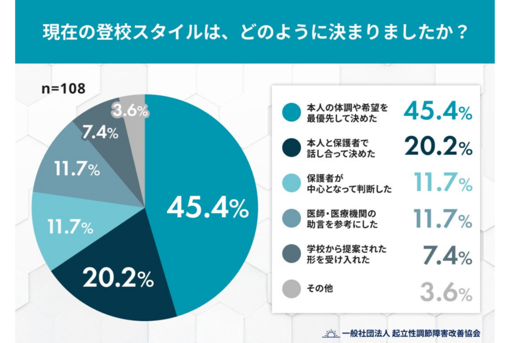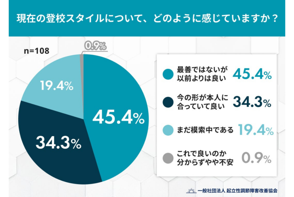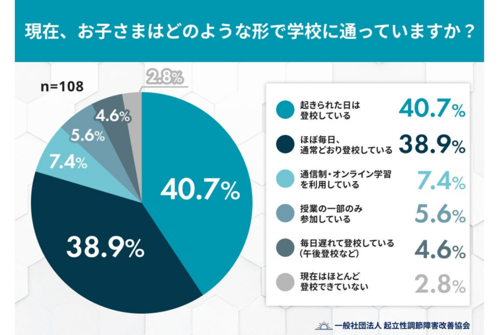 40.7%が「毎日ではないが、起きられた日は登校」と回答。午後登校や授業の一部参加など、本人のコンディションに寄り添った選択が行われています。