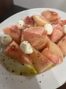 桃のカプレーゼ。 前日も沢山食べちゃったからチーズが少ないけど。